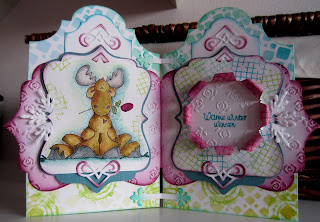Toen ik de kaart zaterdag tijdens de workshop van Aniet aan Marlous liet zien, heeft ze hem gelijk een plekje in de winkel gegeven. Je kunt hem daar dus in het echt zien.