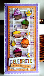 Daarna heb ik lekker die nieuwe cupcakes van MFT zitten kleuren met mijn Copic Markers en de kaart aangekleed met andere Sets. De topping van de cakes heb ik een glittertje geven en de kersen wat Glossy Accents, zodat ze mooi glimmen.